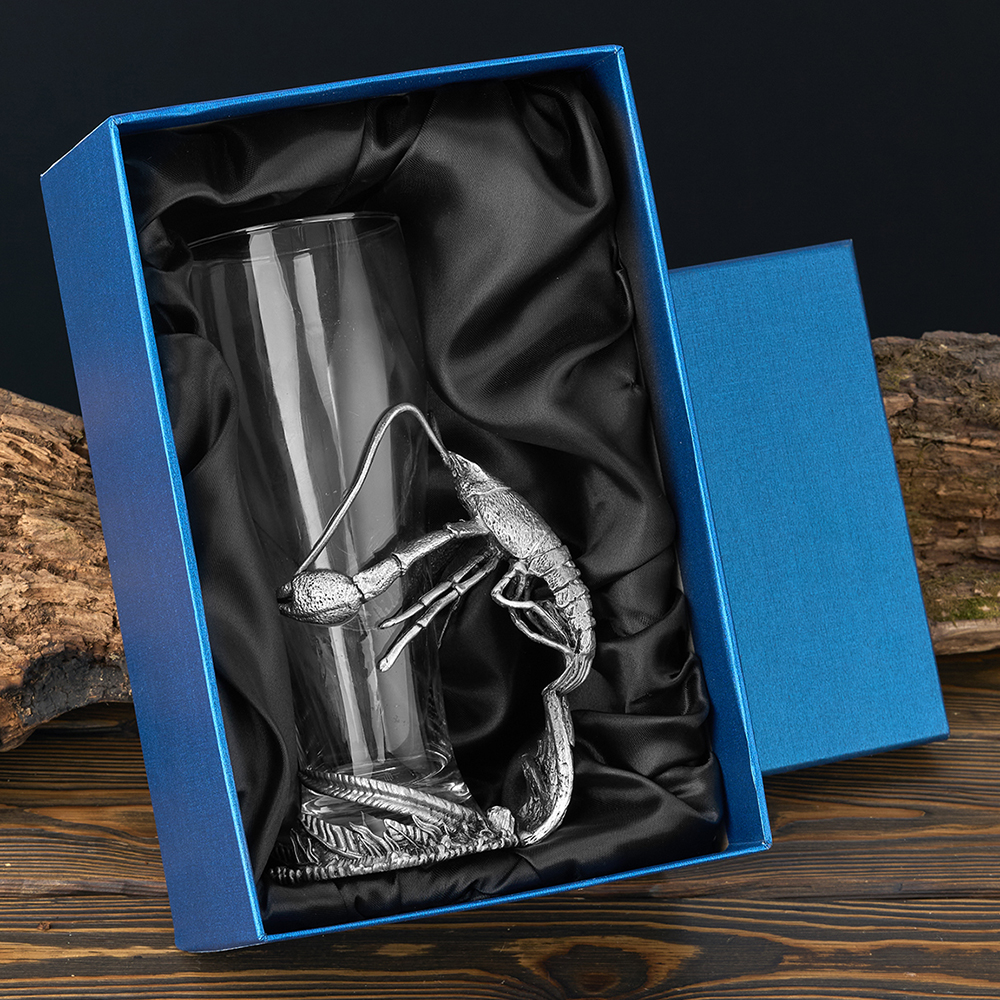 Бокалы для пива с Раком декорирован оригинальной ручкой изготовленной методом художественного литья. Бокал для пива с Раком с оригинальной дизайнерской ручкой в форме рака выполнен из высококачественного оловянного сплава и декорирован покрытием в стиле античного золота. Поход в баню, мальчишник или вечеринка с друзьями станут прекрасным проведением времени в компании с нашим бокалом с Раком. Объем бокала 500 мл, вес придает бокалу солидную респектабельность и аристократичность и неповторимость в использовании. Кружка пивная с Раком прекрасно впишется в интерьер любой квартиры или дома, станет оригинальным элементом дома, приковывающим взгляд. Стакан для пива с Раком станет прекрасным сувениром для мужчины и порадует вашего брата, директора, зятя, коллегу и любого мужчину. Оригинальная декоративная посуда - это всегда интересно, необычно и притягательно. Дно с утолщением, охваченное металлическим хвостом рака, позволяет ему дольше оставаться холодным даже в сильную жару. Размер бокала с ручкой 12,5х9х19 см. Имеет внушительный вес 620 гр. Диаметр горлышка бокала 7 см, диаметр широкой части бокала 7,5 см и диаметр подставки дна 9 см. Пиво, квас или даже вода подарят еще больше удовольствия в нашем стакане с Раком. Каждый бокал для пива с Раком упакован в синюю подарочную коробку с шелковым ложементом. Выбирайте и другие товары нашего ассортимента, нажав на значок Стиль-Ампир справа от фотографии товара.