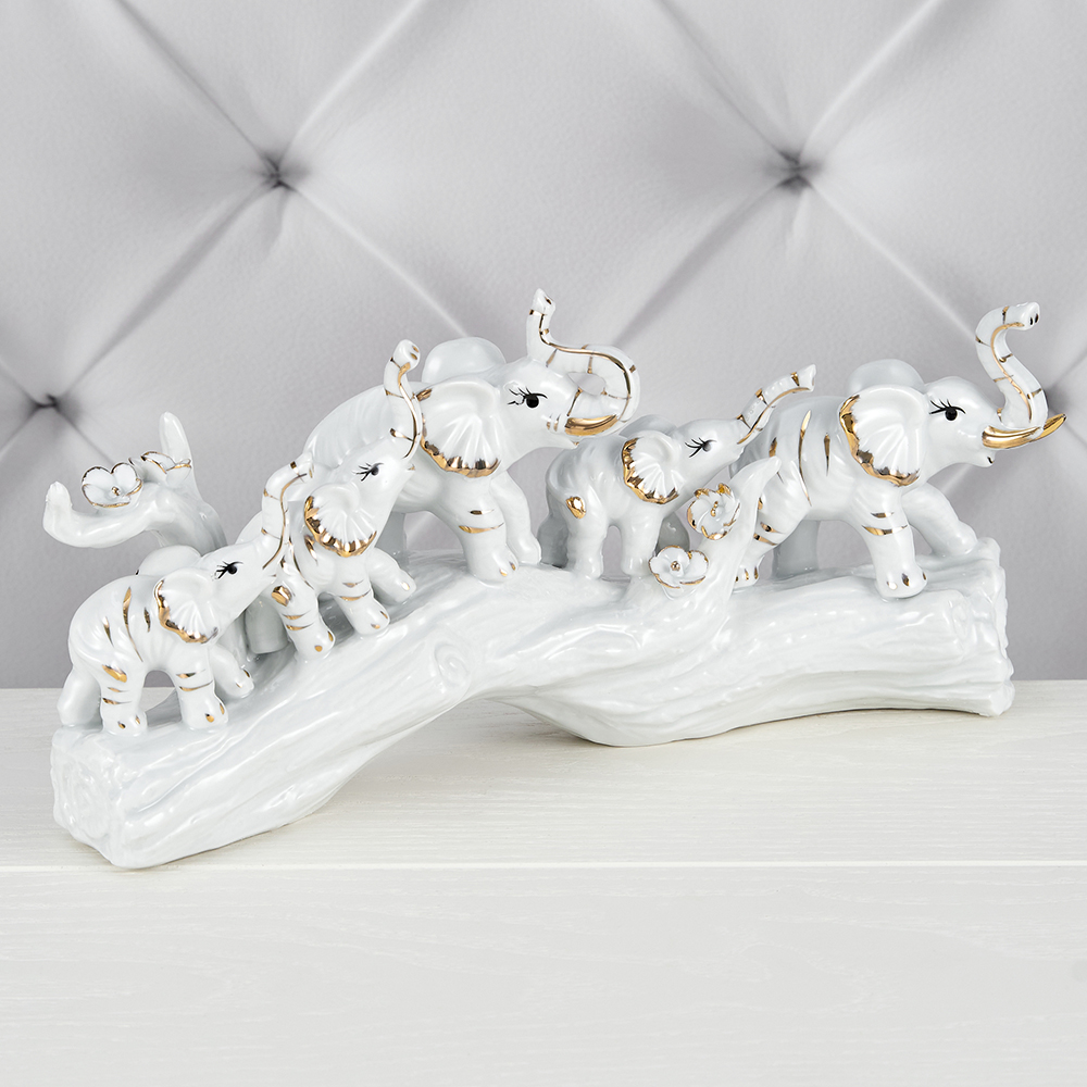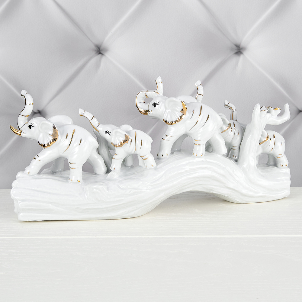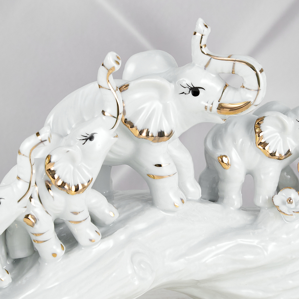 M-YW-053030 (24) Фарфоровая статуэтка "Семья слонов", 29,5*6,5*14см
