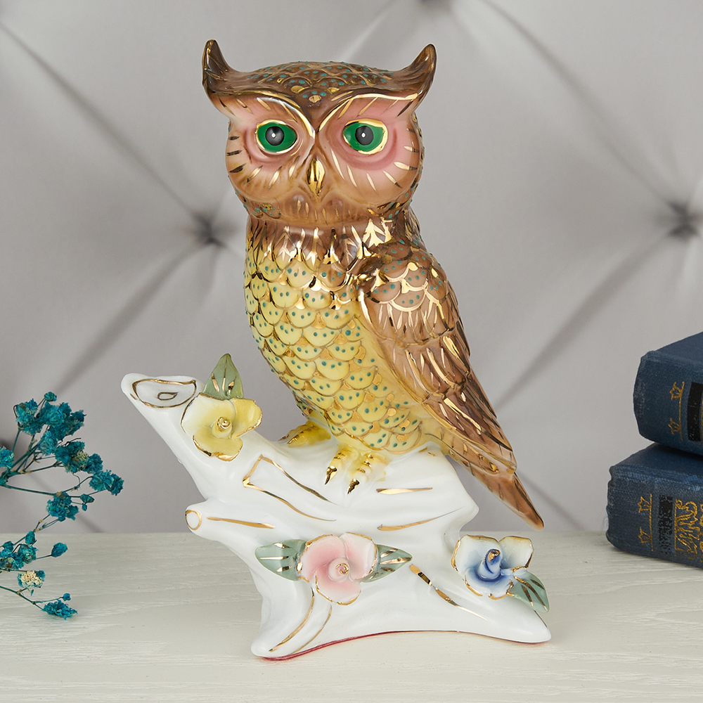 YW-00903/2 (34) Фарфоровая статуэтка "Филин", 15*11*7 см.