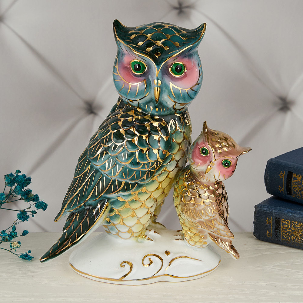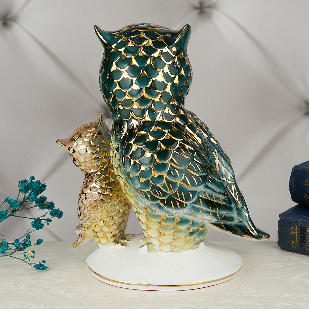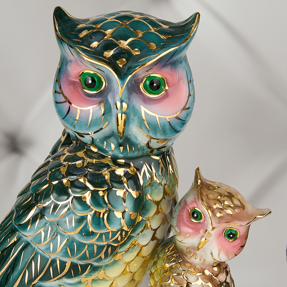 YW-00904/A (48) Фарфоровая статуэтка "Два филина", 16*13*8 см.