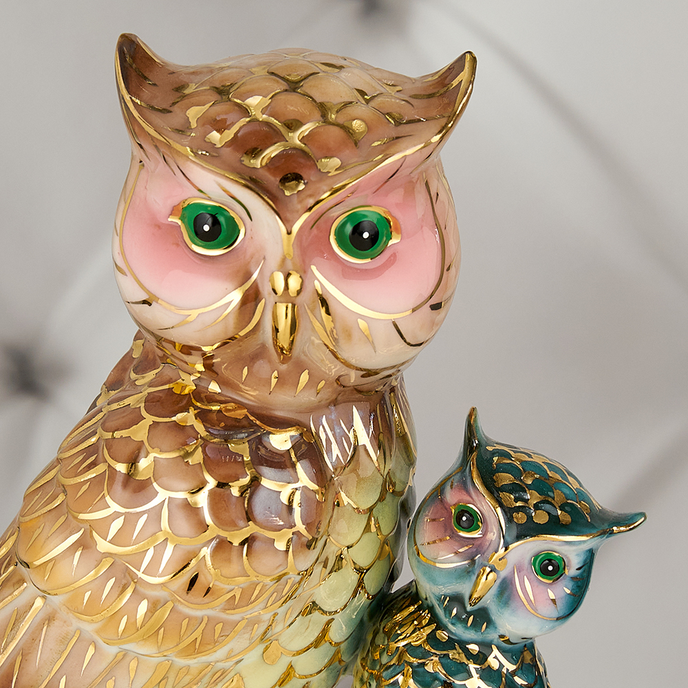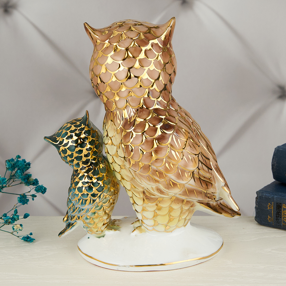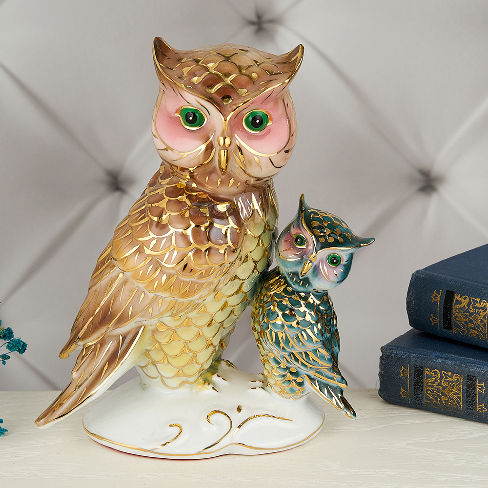 YW-00904/B (48) Фарфоровая статуэтка "Два филина", 16*13*8 см.