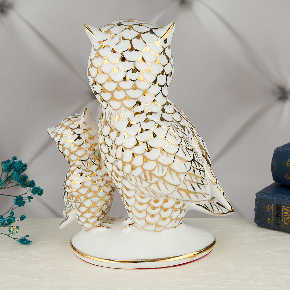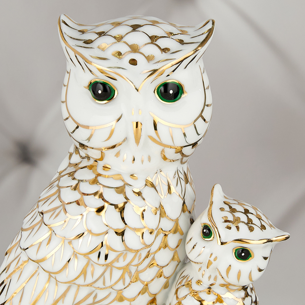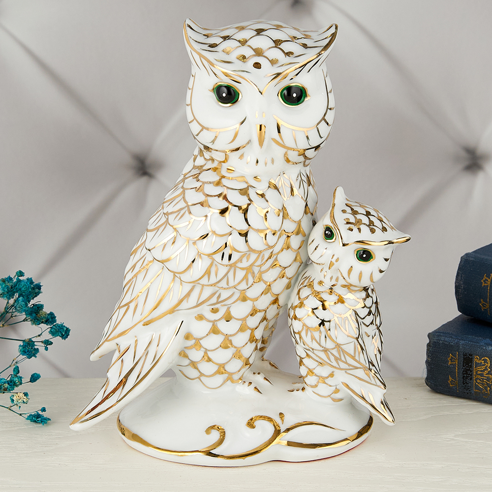 YW-00904/C (48) Фарфоровая статуэтка "Два филина", 16*13*8 см.