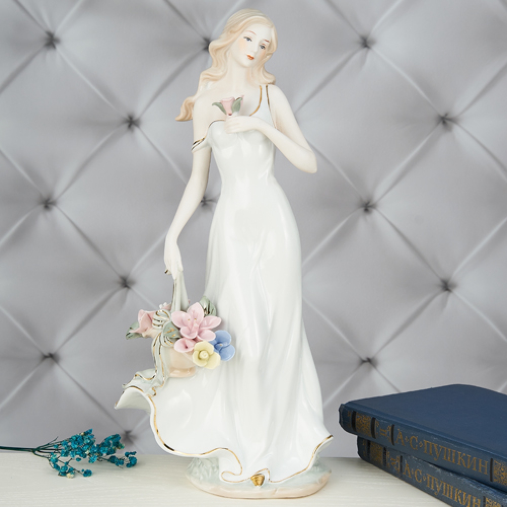 YW-33322 (12) Фарфоровая статуэтка "Девушка с цветами", 16*13*36см
