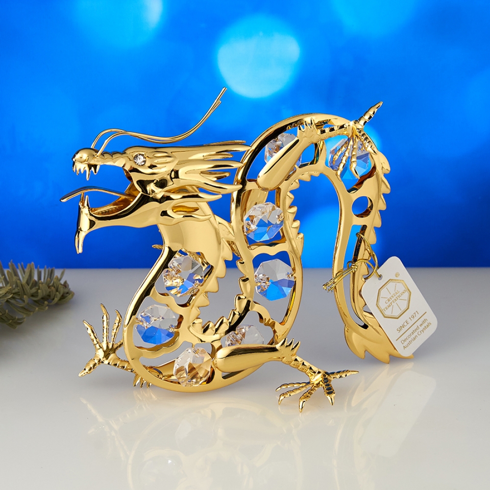 M-U-3371/LG (48) 13*7*10 см. Дракон китайский с 8-ю прозрачными хрусталиками