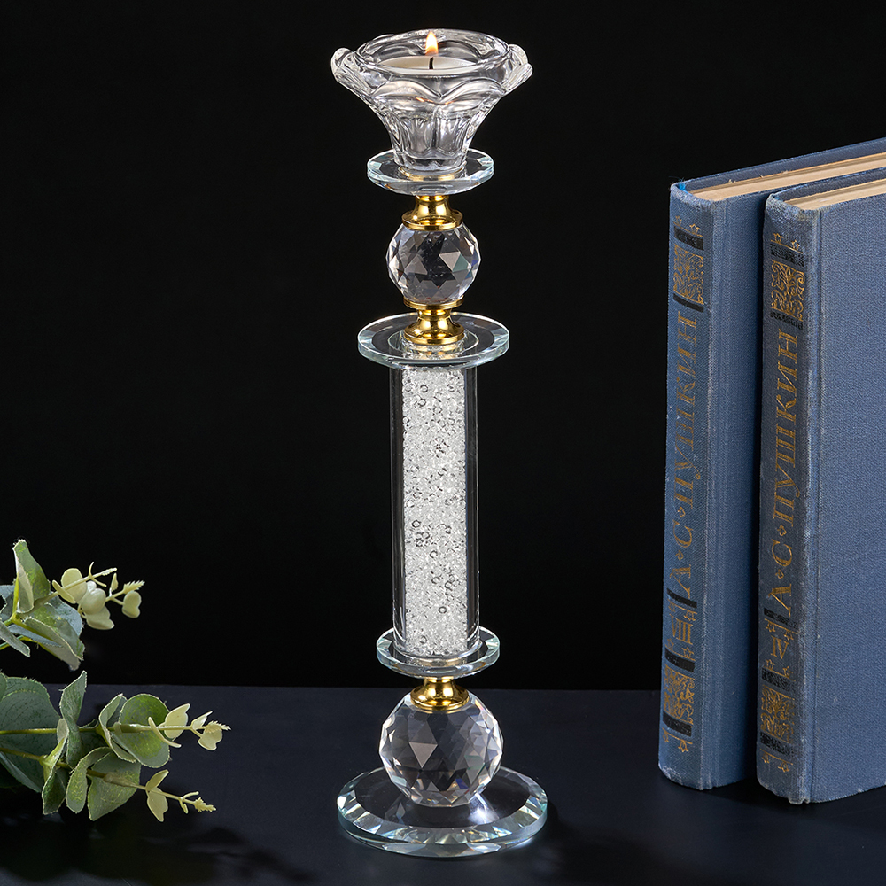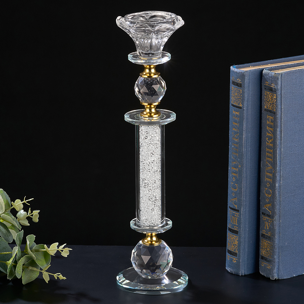 M-YW-061100 (24) Подсвечник из хрустального стекла с насыпными стразами, 7*7*26 см.