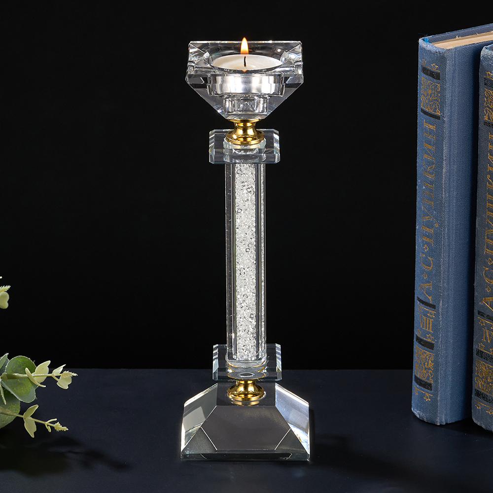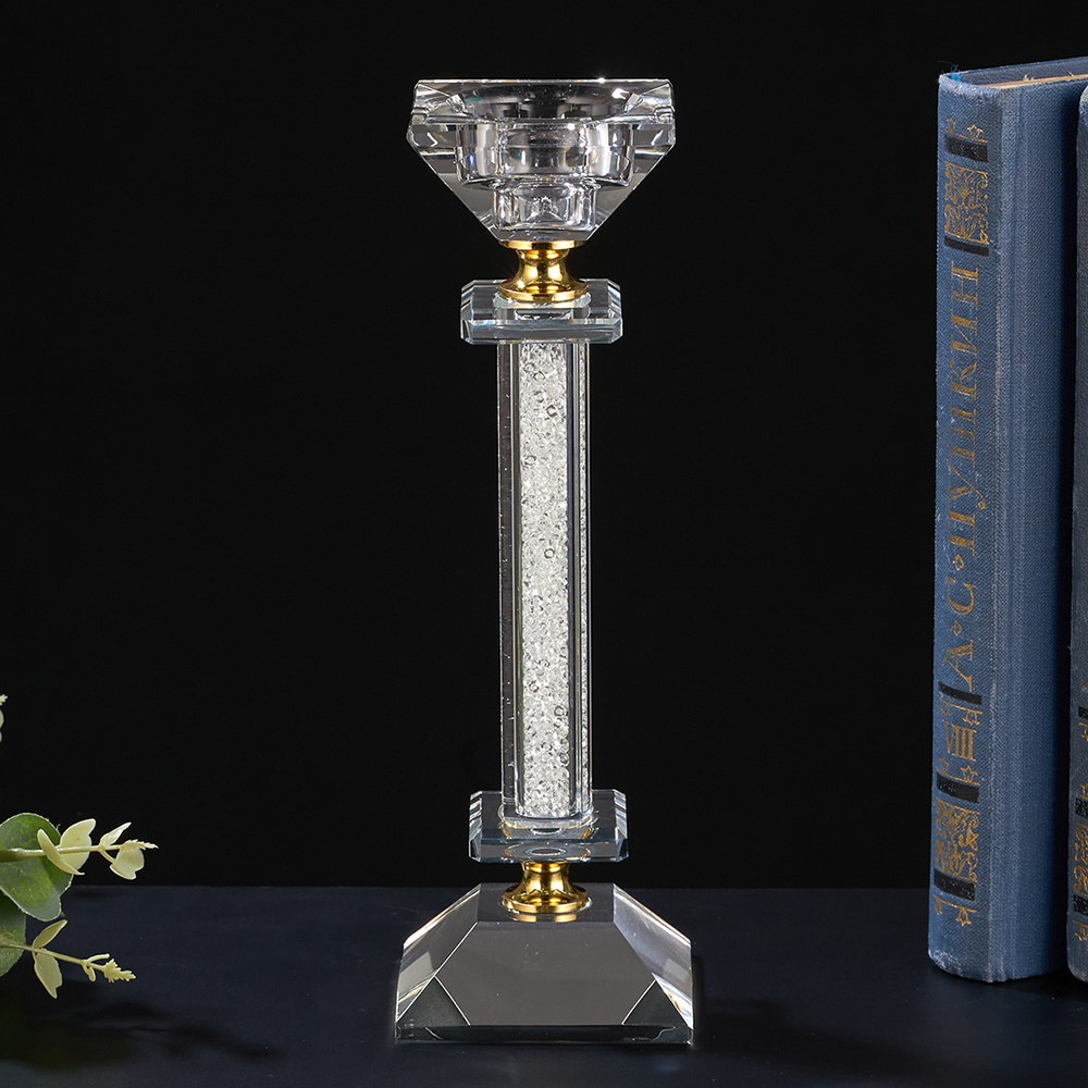 M-YW-061102 (36) Подсвечник из хрустального стекла с насыпными стразами, 6,5*6,5*21 см.