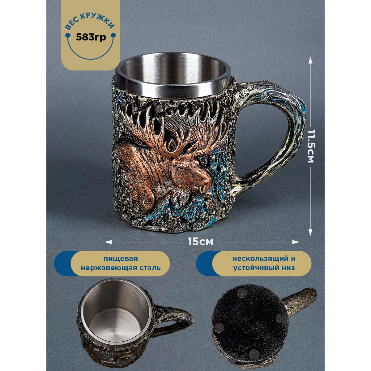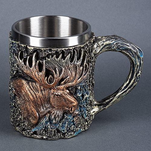 PW-10522 (18) Кружка "Лось", нержавеющая сталь/искусственный камень 15*10*11,5см, 430 мл