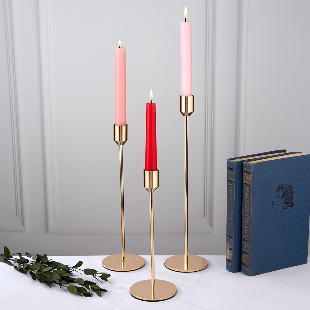 Набор из трех металлических подсвечников – настоящее украшение интерьера. Набор декоративных металлических подсвечников состоит из трех предметов на тонкой ножке разной высоты, с устойчивым основанием и подложкой на дне. Высота подсвечников 33,5, 28 и 23,5 см, диаметр диска подставки 8 см, высота подставки 0,5 см. Подсвечники металлические интерьерные выполнены из качественного металлического сплава с покрытием 24K Gold Color Plated, поэтому они имеют преимущества перед стеклянными подсвечниками. Мы позаботились об индивидуальной упаковке, которая надежно защищает от повреждений при транспортировке. Подсвечники подойдут для украшения праздничной атмосферы, свадебной церемонии или как дополнительный декор освещения вашего дома. Диаметр используемых свечей 2 см. Если вы хотите приготовить сюрприз любимому, подготовьте романтическое свидание дома при свечах, создайте приглушенное освещение, Если вы выбираете оригинальный подарок, выберите набор подсвечников и вы подарите прекрасный предмет интерьера, Роскошный и современный подарок - подсвечники для женщин, подарки женщинам, подарок учителю, воспитателю, начальнику, коллеге по любому поводу и просто так, с днем рождения, подарок на свадьбу, для пасхи, годовщина, помолвка. Три металлических подсвечника под золото подчеркнут романтическую атмосферу для свиданий, приятных сюрпризов и поздравлений, для семейного очага. Подставка не уступает по качеству маркам известных и популярных брендов, Подсвечники просты в уходе, легко моются под теплой водой и удобно хранятся в упаковке. Выбирайте и другие товары нашего ассортимента, нажав на значок Стиль-Ампир справа от фотографии товара.