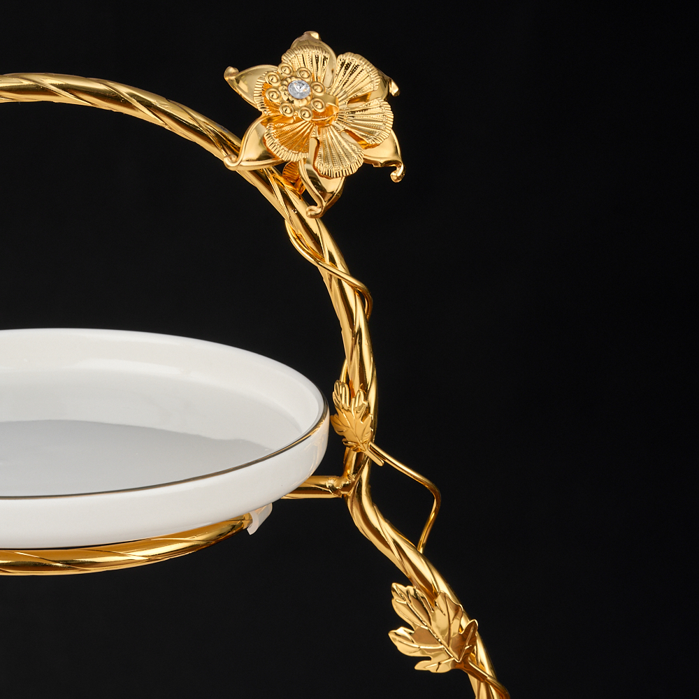 Блюдо этажерка, менажница для фруктов, ярусная конфетница с Мишкой. Стильная и элегантная ярусная ваза со стразами для фруктов - идеальное решение для сервировки фруктов и сладостей на вашем столе. Золотая красавица настоящая королева в мире тарелок и блюд. Впечатляющая фруктница с ножкой создает ощущение легкости и изящества. Фруктовница золотая состоит из двух тарелок , которые легко могут вместить большое количество фруктов или конфет. Металлическая подставка с золотым покрытием 24K Gold Color Plated не только обеспечивает прочность и надежность конструкции, но и придает фруктовнице изысканный и стильный вид. Вазы для фруктов изготовлены из прочного закаленного стекла. Высокое качество материалов гарантирует долгую службу и легкую чистку. Данная фруктовница не только прекрасно подойдет для сервировки фруктов, но и может использоваться как менажница, либо корзина для сервировки конфет, печенья, выпечки, тарелка, а также блюдо для нарезки. Имея роскошный и современный дизайн, эта корзина станет изюминкой декора внутреннего пространства гостиной, зала или кухни-столовой. Эта ярусная фруктовница - идеальный выбор для тех, кто ищет стильную и функциональную блюдо этажерку. Фруктовница надежно упакована в подарочную коробку и дополнительный слой защитной пленки, что делает ее идеальным подарком для родных и близких, мамы, сестры, бабушки, коллеги, тети и других женщин в вашей жизни. Фруктовница не только функциональна, но и является настоящим произведением искусства. Каждый элемент был создан с максимальной тщательностью и вниманием к деталям. Преобразите свой стол в истинное произведение искусства с этой роскошной фруктовницей. Размер менажницы 27х27х21,5 см, высота подставки 4 см, диаметр подставки 9 см, диаметр нижней чаши 27 см, диаметр верхней чаши 21 см. Выбирайте и другие товары нашего ассортимента, нажав на значок Стиль-Ампир справа от фотографии товара.