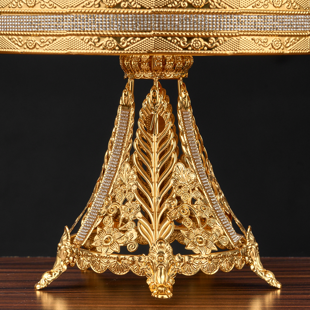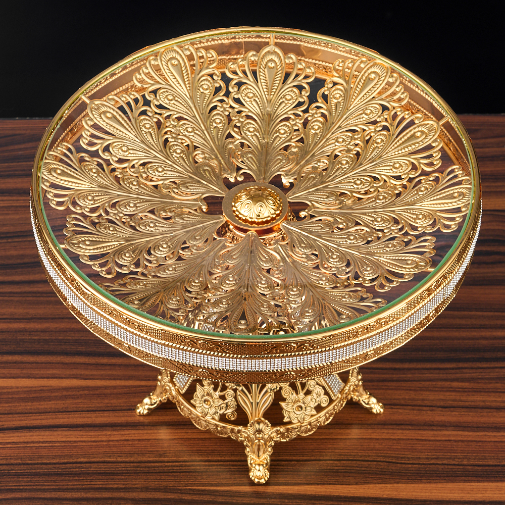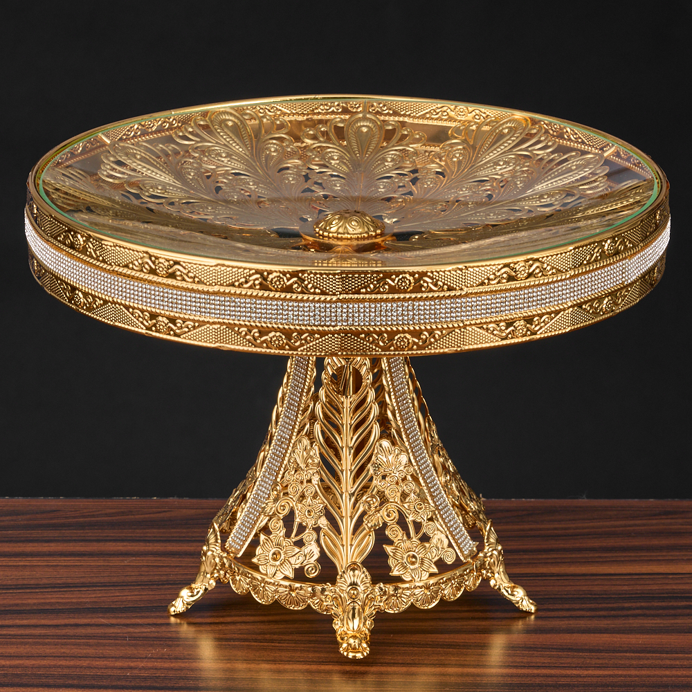 Блюдо этажерка, менажница для фруктов, ярусная конфетница с Мишкой. Стильная и элегантная ярусная ваза со стразами для фруктов - идеальное решение для сервировки фруктов и сладостей на вашем столе. Золотая красавица настоящая королева в мире тарелок и блюд. Впечатляющая фруктница с ножкой создает ощущение легкости и изящества. Фруктовница золотая состоит из двух тарелок , которые легко могут вместить большое количество фруктов или конфет. Металлическая подставка с золотым покрытием 24K Gold Color Plated не только обеспечивает прочность и надежность конструкции, но и придает фруктовнице изысканный и стильный вид. Вазы для фруктов изготовлены из прочного закаленного стекла. Высокое качество материалов гарантирует долгую службу и легкую чистку. Данная фруктовница не только прекрасно подойдет для сервировки фруктов, но и может использоваться как менажница, либо корзина для сервировки конфет, печенья, выпечки, тарелка, а также блюдо для нарезки. Имея роскошный и современный дизайн, эта корзина станет изюминкой декора внутреннего пространства гостиной, зала или кухни-столовой. Эта ярусная фруктовница - идеальный выбор для тех, кто ищет стильную и функциональную блюдо этажерку. Фруктовница надежно упакована в подарочную коробку и дополнительный слой защитной пленки, что делает ее идеальным подарком для родных и близких, мамы, сестры, бабушки, коллеги, тети и других женщин в вашей жизни. Фруктовница не только функциональна, но и является настоящим произведением искусства. Каждый элемент был создан с максимальной тщательностью и вниманием к деталям. Преобразите свой стол в истинное произведение искусства с этой роскошной фруктовницей. Размер менажницы 27х27х21,5 см, высота подставки 4 см, диаметр подставки 9 см, диаметр нижней чаши 27 см, диаметр верхней чаши 21 см. Выбирайте и другие товары нашего ассортимента, нажав на значок Стиль-Ампир справа от фотографии товара.