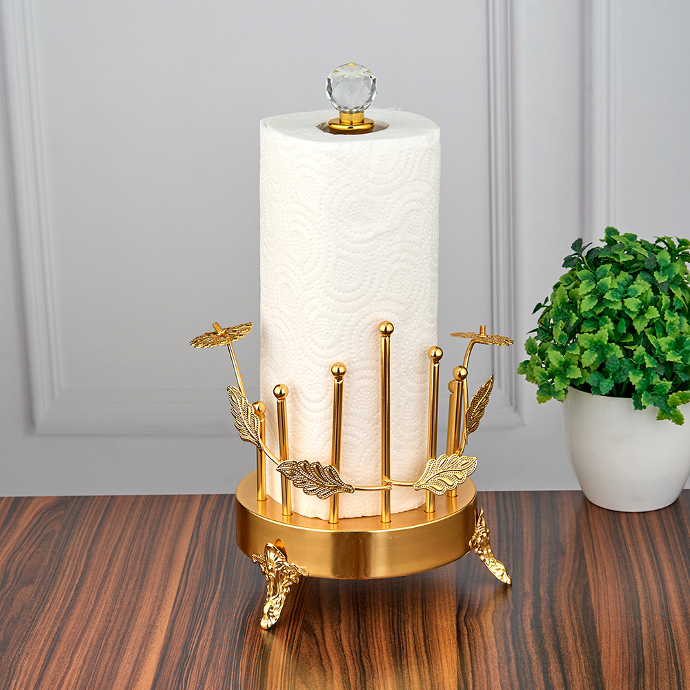 Держатель подставка для рулонных бумажных полотенец имеет оригинальную конструкцию. Подставка для бумажных полотенец обеспечивает удобный доступ для рулона салфеток. Покрытие диспенсера для кухни 24K Gold Color Plated выглядит дорого и стильно и декорировано австрийскими стразами. Круглое основание удерживает полотенцедержатель в вертикальном положении, обеспечивая опору, а оригинальный декор создаст яркую атмосферу. В салфетницу кухонную помещаются стандартные бумажные рулоны, поэтому вы можете с уверенностью выбирать свои любимые бренды. Небольшая занимаемая площадь позволяет сэкономить драгоценное место на столе. Имеет дополнительную опору в виде цветочного декора для удобства использования. Кухонный настольный держатель для бумажных рулонных полотенец, красивая подставка для хранения на кухне, декоративная вертикальная подставка с узором для бумажных полотенец поможет поддержать порядок на вашей кухне. Чудесная подарочная стойка для полотенец станет прекрасным подарком для мамы, бабушки, дедушки, сестры, брата или друга. Полотенцедержатель станет отличным подарком на 8 марта, новый год, день рождение, 14 февраля. Держатель имеет размер 20х16х33 см. Выбирайте и другие товары нашего ассортимента, нажав на значок Стиль-Ампир справа от фотографии товара.