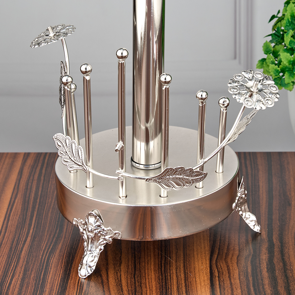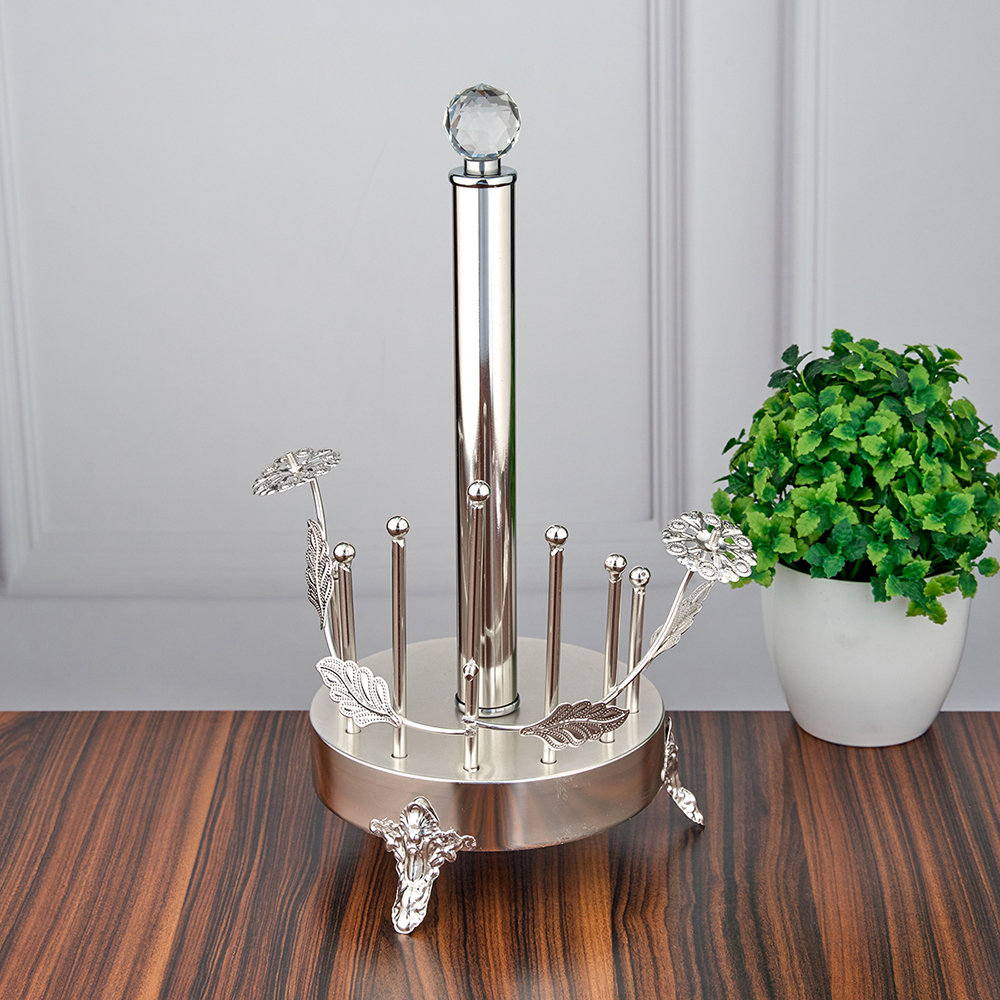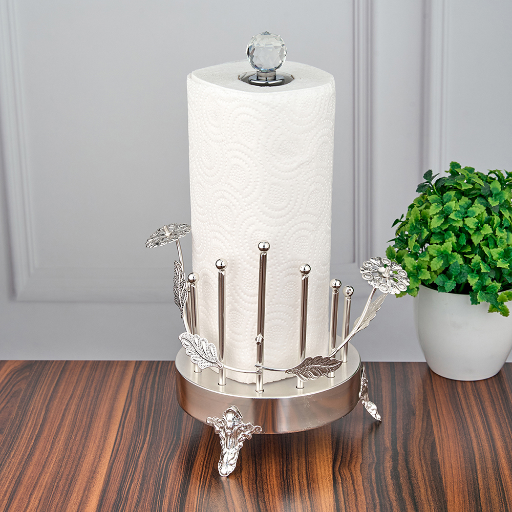 Держатель подставка для рулонных бумажных полотенец имеет оригинальную конструкцию. Подставка для бумажных полотенец обеспечивает удобный доступ для рулона салфеток. Покрытие диспенсера для кухни 18K Silver Plated выглядит дорого и стильно и декорировано австрийскими стразами. Круглое основание удерживает полотенцедержатель в вертикальном положении, обеспечивая опору, а оригинальный декор создаст яркую атмосферу. В салфетницу кухонную помещаются стандартные бумажные рулоны, поэтому вы можете с уверенностью выбирать свои любимые бренды. Небольшая занимаемая площадь позволяет сэкономить драгоценное место на столе. Имеет дополнительную опору в виде цветочного декора для удобства использования. Кухонный настольный держатель для бумажных рулонных полотенец, красивая подставка для хранения на кухне, декоративная вертикальная подставка с узором для бумажных полотенец поможет поддержать порядок на вашей кухне. Чудесная подарочная стойка для полотенец станет прекрасным подарком для мамы, бабушки, дедушки, сестры, брата или друга. Полотенцедержатель станет отличным подарком на 8 марта, новый год, день рождение, 14 февраля. Держатель имеет размер 20х16х33 см. Выбирайте и другие товары нашего ассортимента, нажав на значок Стиль-Ампир справа от фотографии товара.