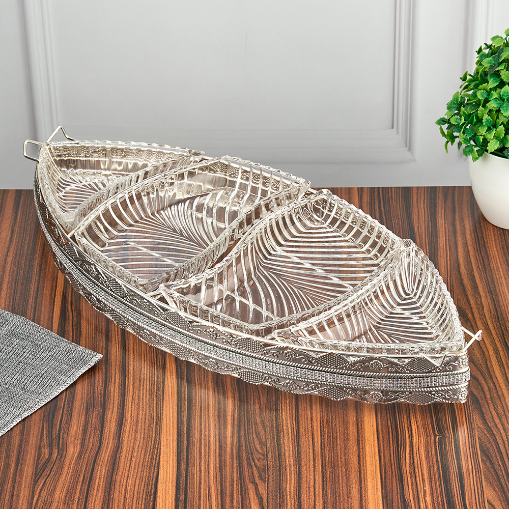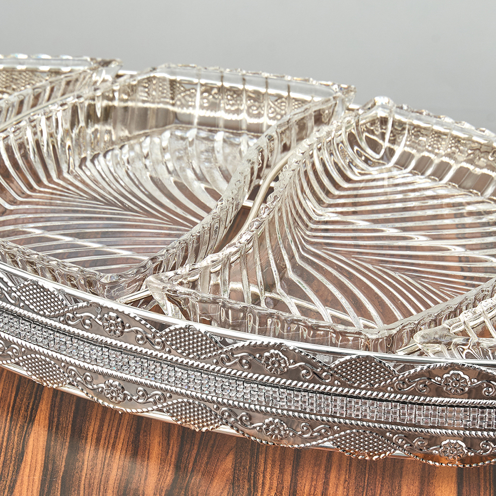 M-YW-28028 (10) Менажница с 4-мя стеклянными съемными чашами, 50,5х24х7 см.