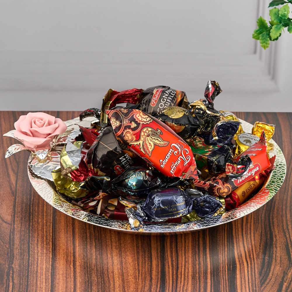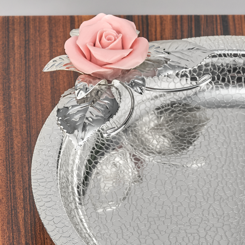 Тарелка для сладостей декорированная цветком розы.