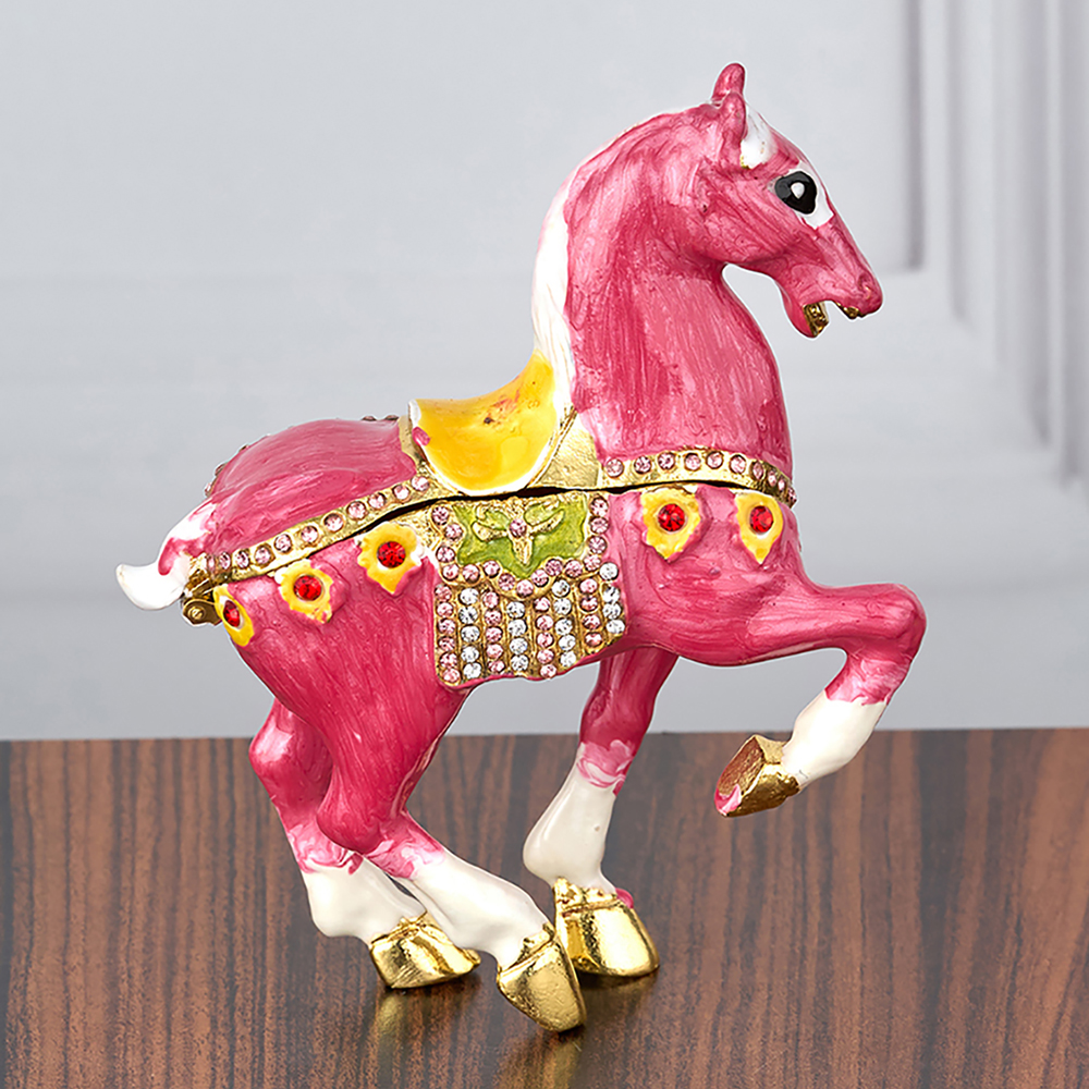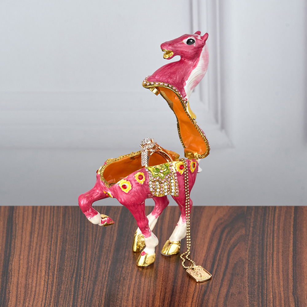 Шкатулка для украшений, фигурка, статуэтка Лошадь, в виде животных - это уникальное произведение ювелирного искусства, которое сочетает в себе изысканность формы и красоту животного мира. Каждая деталь фигурки Лошадь продумана до мельчайших нюансов, каждая выполнена с безупречным качеством и вниманием к деталям. Открывая шкатулку, можно увидеть внутреннюю часть, которая также оформлена с большой тщательностью. Внутри находится отделение, предназначенное для хранения ценностей или ювелирных изделий. Шкатулка в виде животных в стиле Фаберже является не только предметом роскоши и красоты, но и символом природы и ее величия. Она напоминает о богатстве и разнообразии животного мира. Такая шкатулка станет не только изысканным аксессуаром, но и настоящим произведением искусства, которое будет вызывать восхищение и восторг у вас и ваших близких. Шкатулка имеет надёжный магнитный замок. Каждое изделие упаковано в элегантную коробку с шелковым ложементом. Все статуэтки Лошадь выполнены и окрашены исключительно вручную с помощью уникального способа производства металлического литья сочетающего оригинальную технику эмали и филигранную инкрустацию австрийскими кристаллами. Помимо практической функции, шкатулка в виде фигурки послужит прекрасным украшением интерьера. Выбирайте и другие товары нашего ассортимента, нажав на значок Стиль-Ампир справа от фотографии товара.