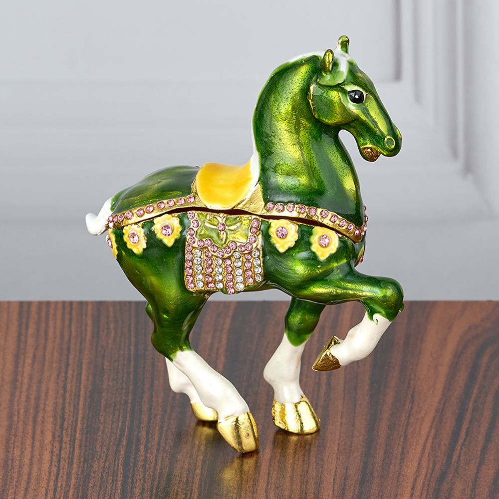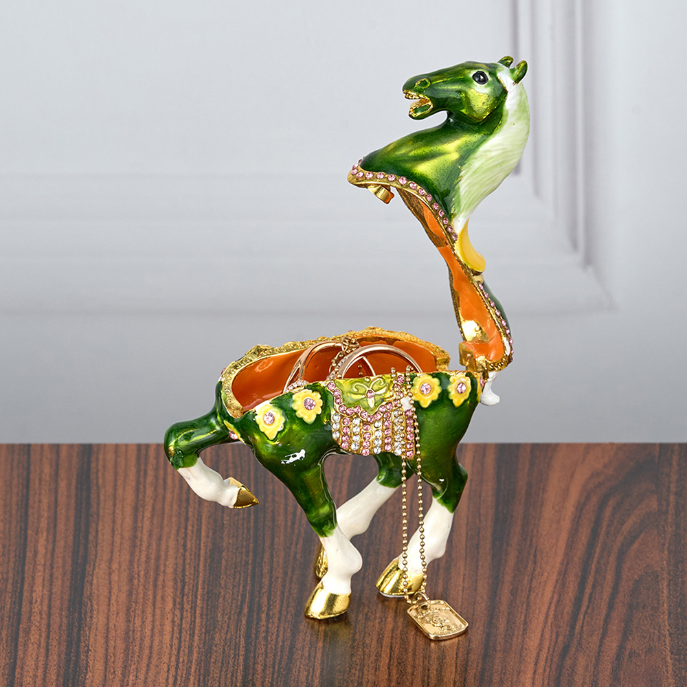 Шкатулка для украшений, фигурка, статуэтка Лошадь, в виде животных - это уникальное произведение ювелирного искусства, которое сочетает в себе изысканность формы и красоту животного мира. Каждая деталь фигурки Лошадь продумана до мельчайших нюансов, каждая выполнена с безупречным качеством и вниманием к деталям. Открывая шкатулку, можно увидеть внутреннюю часть, которая также оформлена с большой тщательностью. Внутри находится отделение, предназначенное для хранения ценностей или ювелирных изделий. Шкатулка в виде животных в стиле Фаберже является не только предметом роскоши и красоты, но и символом природы и ее величия. Она напоминает о богатстве и разнообразии животного мира. Такая шкатулка станет не только изысканным аксессуаром, но и настоящим произведением искусства, которое будет вызывать восхищение и восторг у вас и ваших близких. Шкатулка имеет надёжный магнитный замок. Каждое изделие упаковано в элегантную коробку с шелковым ложементом. Все статуэтки Лошадь выполнены и окрашены исключительно вручную с помощью уникального способа производства металлического литья сочетающего оригинальную технику эмали и филигранную инкрустацию австрийскими кристаллами. Помимо практической функции, шкатулка в виде фигурки послужит прекрасным украшением интерьера. Выбирайте и другие товары нашего ассортимента, нажав на значок Стиль-Ампир справа от фотографии товара.