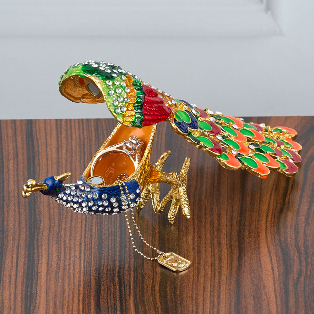 M-LI-8867 (30) Шкатулка для ювелирных украшений "Павлин" со стразами. 16х7х9 см.