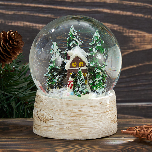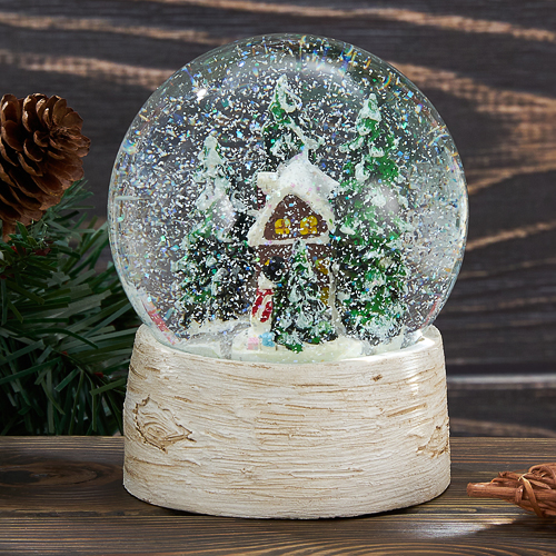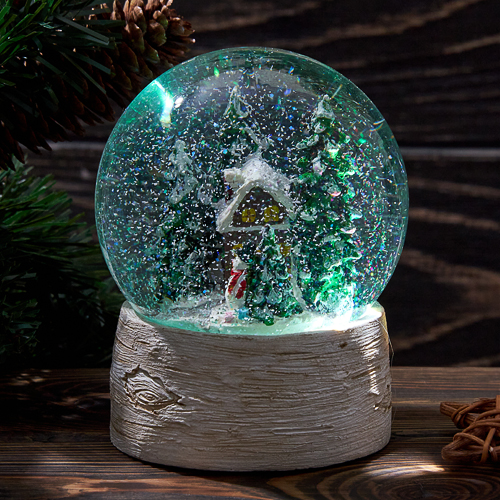 M-HY-15802 (12) Водяной шар со светодиодамии на подставке из полистоуна, 10*10*12 см.