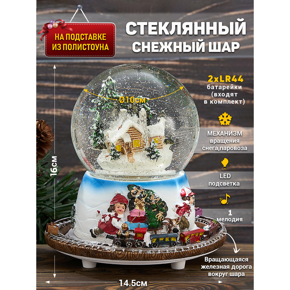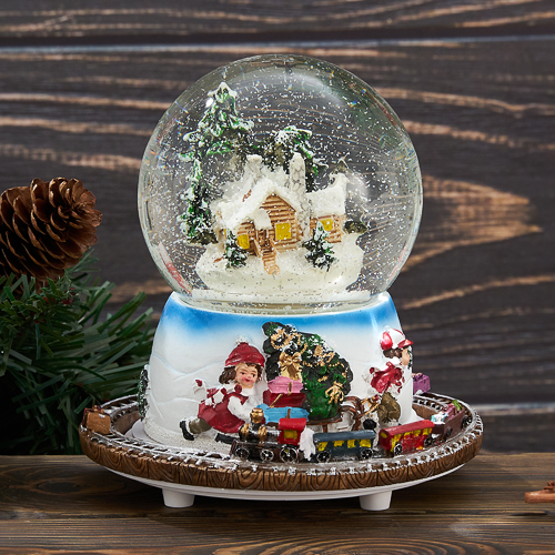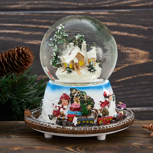 Музыкальный снежный шар - отличный подарок для детей и взрослых. Он дополнит сказочную атмосферу Нового года и поможет отвлечься от суеты. Шар имеет диаметр 10 см. Шар работает от двух элементов питания типа LR44 (в комплекте). При включении появляется сказочная подсветка и начинает вращаться подставка, создается эффект движения поезда. Музыка появляется после механического завода тумблера, расположенного на дне подставки шарика. А волшебная метель создаст ощущение праздника в вашем доме. Уважаемые клиенты при заказе снежных шаров, обращайте внимание на температуру воздуха в регионе отправки и в регионе получения. При температуре воздуха ниже -10 градусов шар может быть поврежден. Выбирайте и другие товары нашего ассортимента, нажав на значок Стиль-Ампир справа от фотографии товара.