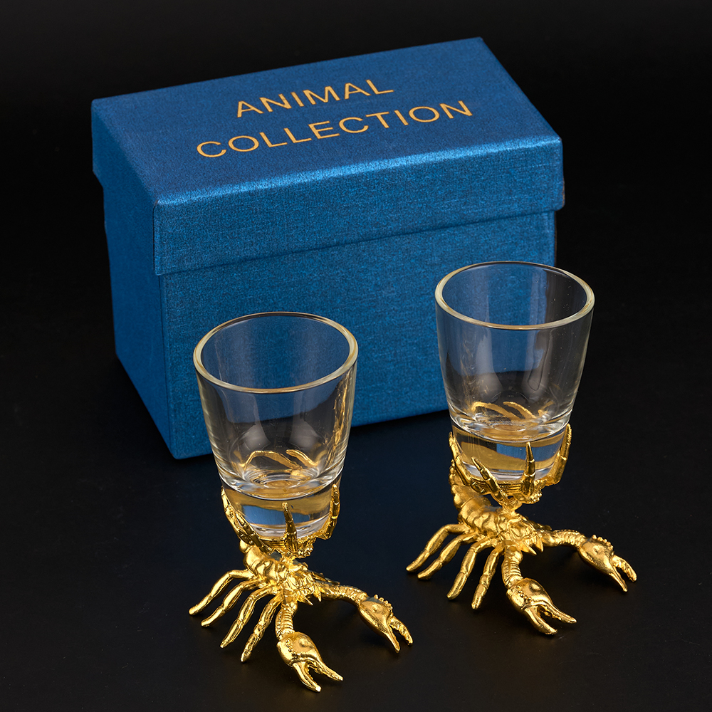 Набор стопок перевертышей это оригинальный подарок на любой праздник или день рождения. Отличительной особенностью стопок являются головы животных. Эксклюзивный подарочный набор стопок перевертышей выполнен в технике художественного литья под вакуумом. Головы животных изготовлены из сплава олова. Стеклянные стопки выполнены из огнеупорного стекла. Смотрятся очень естественно благодаря тонкой работе производителя. При этом они обеспечивают стопке устойчивость когда она наполняется жидкостью. Благодаря оригинальному оформлению, стопки достойно выполнят роль эксклюзивного сувенира их по достоинству оценят коллеги по работе, родственники и друзья. Советы по уходу и эксплуатации: Не использовать средства,содержащие хлор и аммиак. Не использовать абразивные моющие средства.