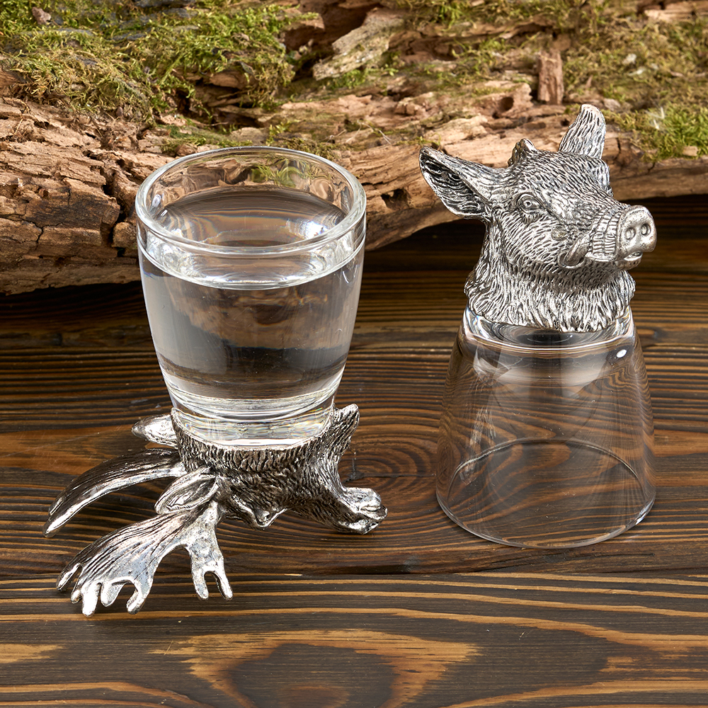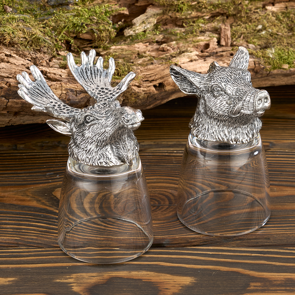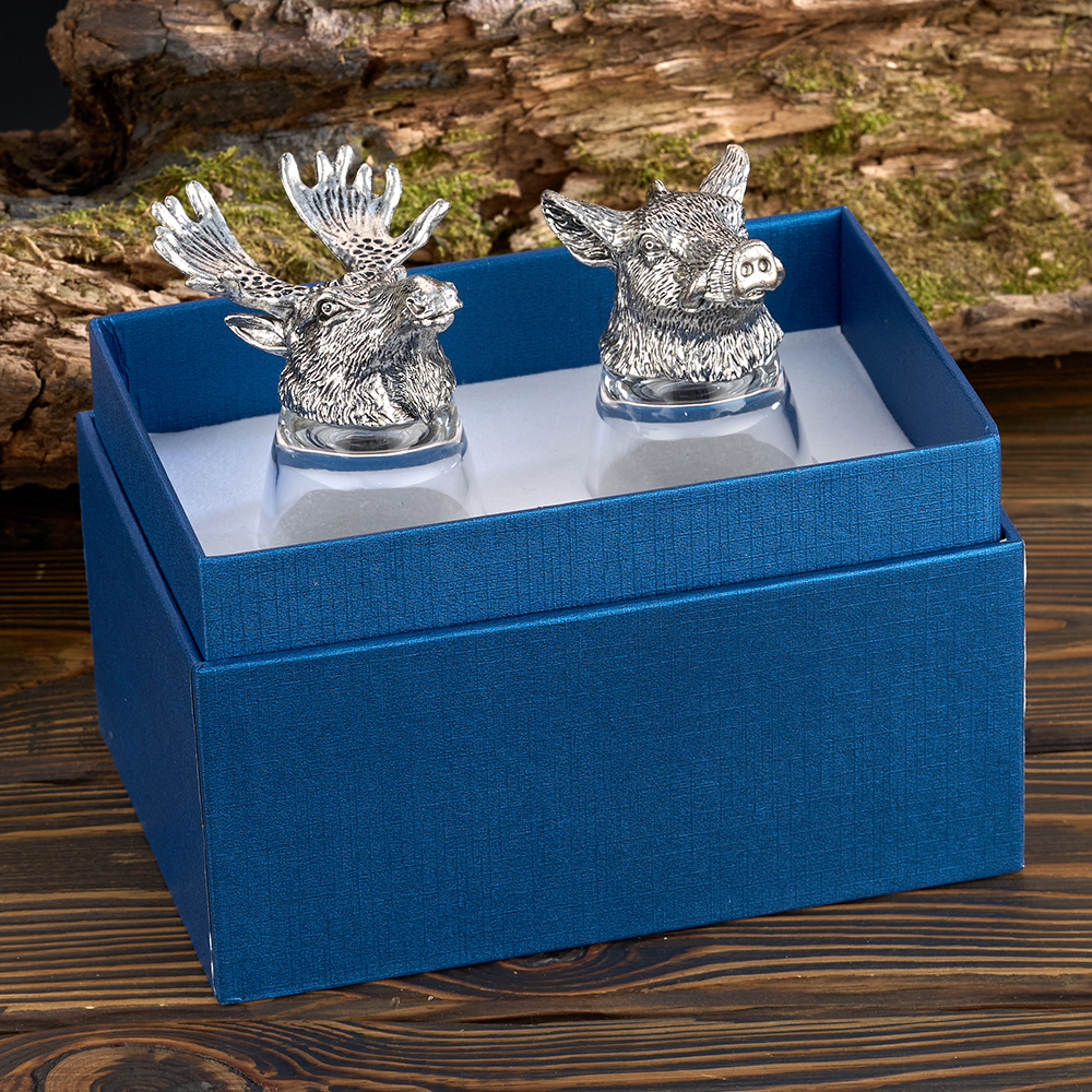 M-96270 (20) Набор из 2 стопок-перевертышей "Кабан и Лось"18K Silverplated (50мл/стопка) d=4.8с h=9с
