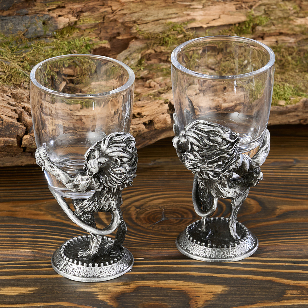 Подарочный набор стеклянных стопок перевертышей для водки объёмом 50 мл., весом 172 грамма каждая, размером 5х5,5х9,5 см. Набор рюмок с головами животных - это оригинальный подарок и сувенир для охотника, рыболова, а также необычная посуда на большом дружеском застолье. Отличительной особенностью стопок перевертышей являются головы животных. Эксклюзивный подарочный набор рюмок перевертышей выполнен в технике художественного литья под вакуумом. Железные наконечники в виде животных изготовлены из сплава олова и металла. При этом они обеспечивают стопке устойчивость, когда она наполняется жидкостью. Стеклянные стопки выполнены из огнеупорного стекла.