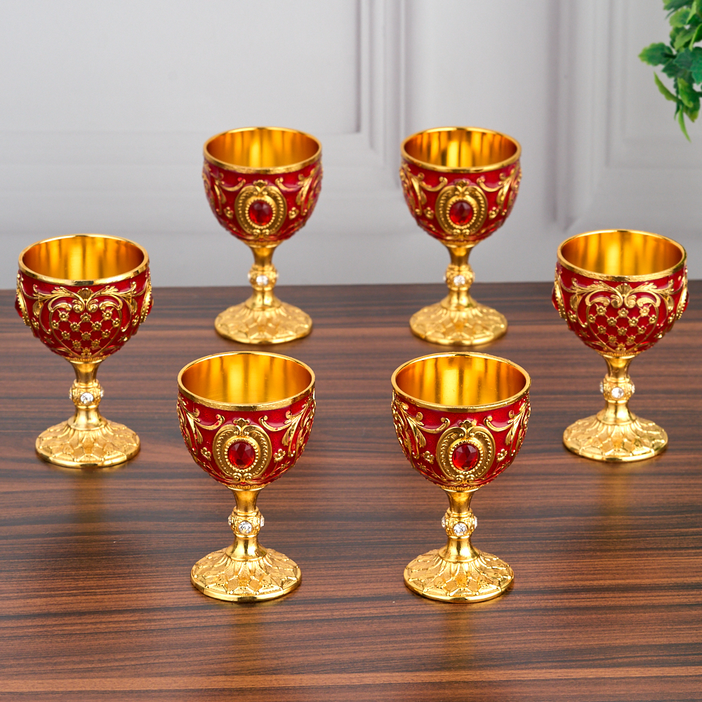 Рюмки для водки необычные, с оригинальным дизайном, набор из 6 рюмок из нержавеющей стали с покрытием 24K Gold Color Plated полезный аксессуар для сервировки стола. Декоративный набор из 6 рюмок с резным узором, посуда - идеально подходит для вашего интерьера, для дома, дачи, квартиры, для кухни или ресторана, для сервировки стола на каждый день, украсит праздничный или обеденный стол. Рюмки применяются для употребления водки, ликера, коктейлей, текилы и любых крепких алкогольных напитков, имеют объем 35 мл, высоту 7 см и диаметр 4,5 см., вес одной рюмки 63 гр. Рюмки металлические - не впитывают запах, легко моются, после мытья вытирать мягкой тканью насухо (не мыть в посудомоечной машине). Рюмки будут отлично выглядеть как декор праздничного интерьера и прекрасно дополнят уютную сервировку стола. Подарочный набор из 6 рюмок - лучший подарок парню, другу, дедушке, брату, папе, любимому, мужу, мужчине, для нее, для мамы, бабушки, девушки, любимой жены, для коллеги по работе, начальнику, учителю, врачу, подруге, друзьям на новый год, на рождество, на 8 марта, на 14 февраля, на день рождения, на именины, на любой повод или без повода просто так. Выбирайте и другие товары нашего ассортимента, нажав на значок Стиль-Ампир справа от фотографии товара.