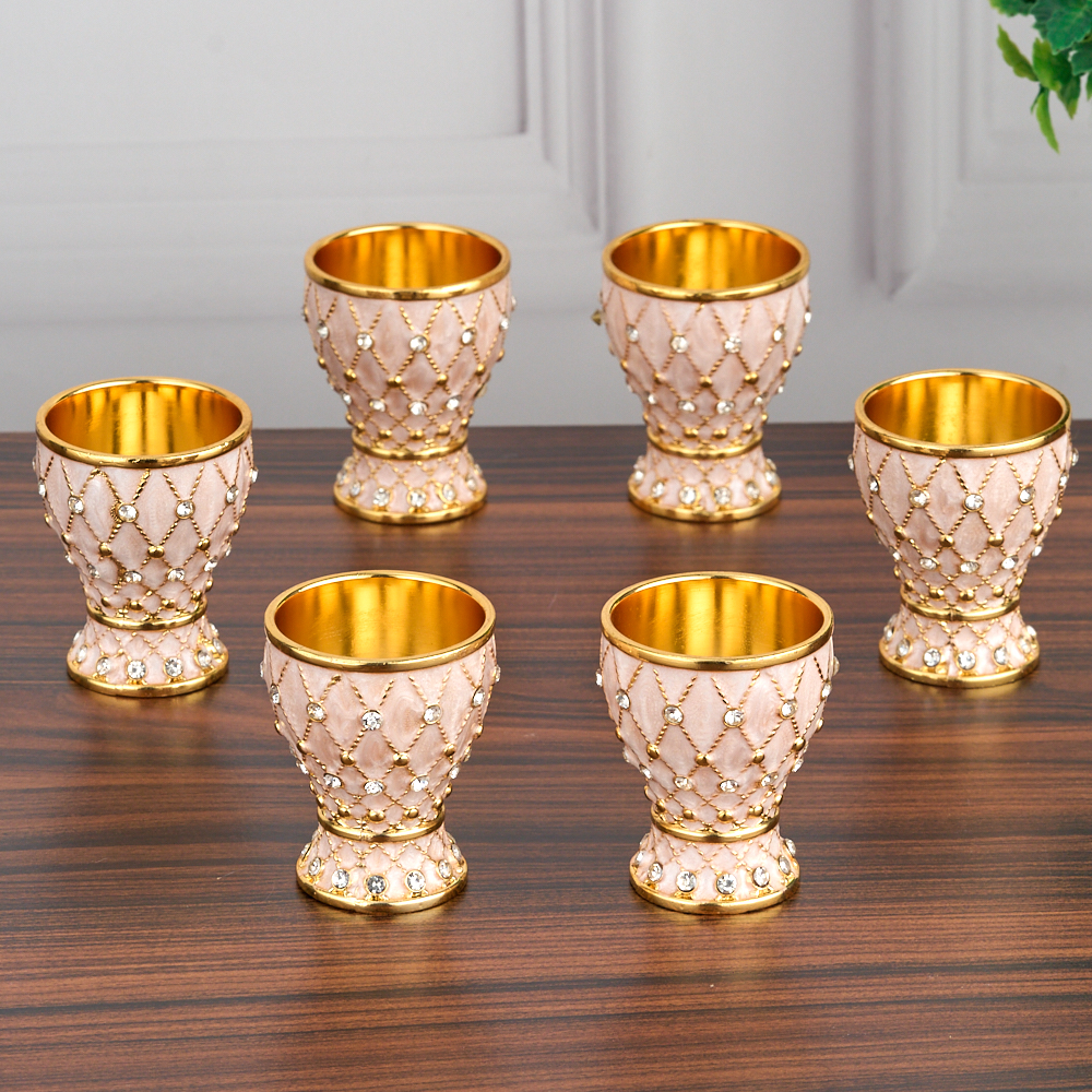 Рюмки для водки необычные, с оригинальным дизайном, набор из 6 рюмок из нержавеющей стали с покрытием 24K Gold Color Plated полезный аксессуар для сервировки стола. Декоративный набор из 6 рюмок с резным узором, посуда - идеально подходит для вашего интерьера, для дома, дачи, квартиры, для кухни или ресторана, для сервировки стола на каждый день, украсит праздничный или обеденный стол. Рюмки применяются для употребления водки, ликера, коктейлей, текилы и любых крепких алкогольных напитков, имеют объем 35 мл, высоту 5,5 см и диаметр 4 см., вес одной рюмки 59 гр. Рюмки металлические - не впитывают запах, легко моются, после мытья вытирать мягкой тканью насухо (не мыть в посудомоечной машине). Рюмки будут отлично выглядеть как декор праздничного интерьера и прекрасно дополнят уютную сервировку стола. Подарочный набор из 6 рюмок - лучший подарок парню, другу, дедушке, брату, папе, любимому, мужу, мужчине, для нее, для мамы, бабушки, девушки, любимой жены, для коллеги по работе, начальнику, учителю, врачу, подруге, друзьям на новый год, на рождество, на 8 марта, на 14 февраля, на день рождения, на именины, на любой повод или без повода просто так. Выбирайте и другие товары нашего ассортимента, нажав на значок Стиль-Ампир справа от фотографии товара.