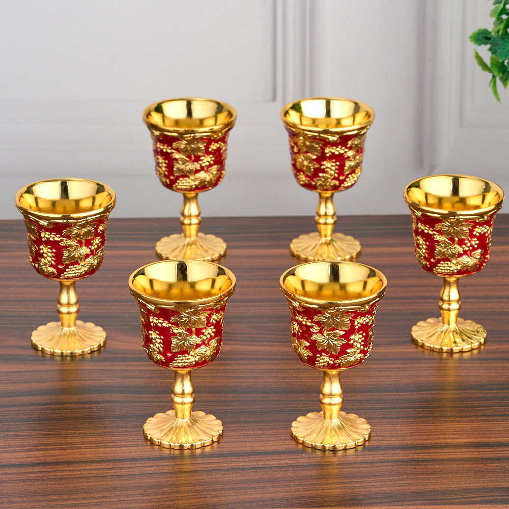 Рюмки для водки необычные, с оригинальным дизайном, набор из 6 рюмок из нержавеющей стали с покрытием 24K Gold Color Plated полезный аксессуар для сервировки стола. Декоративный набор из 6 рюмок с резным узором, посуда - идеально подходит для вашего интерьера, для дома, дачи, квартиры, для кухни или ресторана, для сервировки стола на каждый день, украсит праздничный или обеденный стол. Рюмки применяются для употребления водки, ликера, коктейлей, текилы и любых крепких алкогольных напитков, имеют объем 35 мл, высоту 7 см и диаметр 4,5 см., вес одной рюмки 61 гр. Рюмки металлические - не впитывают запах, легко моются, после мытья вытирать мягкой тканью насухо (не мыть в посудомоечной машине). Рюмки будут отлично выглядеть как декор праздничного интерьера и прекрасно дополнят уютную сервировку стола. Подарочный набор из 6 рюмок - лучший подарок парню, другу, дедушке, брату, папе, любимому, мужу, мужчине, для нее, для мамы, бабушки, девушки, любимой жены, для коллеги по работе, начальнику, учителю, врачу, подруге, друзьям на новый год, на рождество, на 8 марта, на 14 февраля, на день рождения, на именины, на любой повод или без повода просто так. Выбирайте и другие товары нашего ассортимента, нажав на значок Стиль-Ампир справа от фотографии товара.