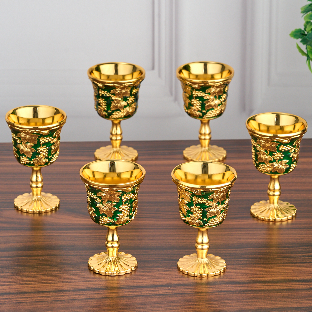Рюмки для водки необычные, с оригинальным дизайном, набор из 6 рюмок из нержавеющей стали с покрытием 24K Gold Color Plated полезный аксессуар для сервировки стола. Декоративный набор из 6 рюмок с резным узором, посуда - идеально подходит для вашего интерьера, для дома, дачи, квартиры, для кухни или ресторана, для сервировки стола на каждый день, украсит праздничный или обеденный стол. Рюмки применяются для употребления водки, ликера, коктейлей, текилы и любых крепких алкогольных напитков, имеют объем 35 мл, высоту 7 см и диаметр 4,5 см., вес одной рюмки 61 гр. Рюмки металлические - не впитывают запах, легко моются, после мытья вытирать мягкой тканью насухо (не мыть в посудомоечной машине). Рюмки будут отлично выглядеть как декор праздничного интерьера и прекрасно дополнят уютную сервировку стола. Подарочный набор из 6 рюмок - лучший подарок парню, другу, дедушке, брату, папе, любимому, мужу, мужчине, для нее, для мамы, бабушки, девушки, любимой жены, для коллеги по работе, начальнику, учителю, врачу, подруге, друзьям на новый год, на рождество, на 8 марта, на 14 февраля, на день рождения, на именины, на любой повод или без повода просто так. Выбирайте и другие товары нашего ассортимента, нажав на значок Стиль-Ампир справа от фотографии товара.
