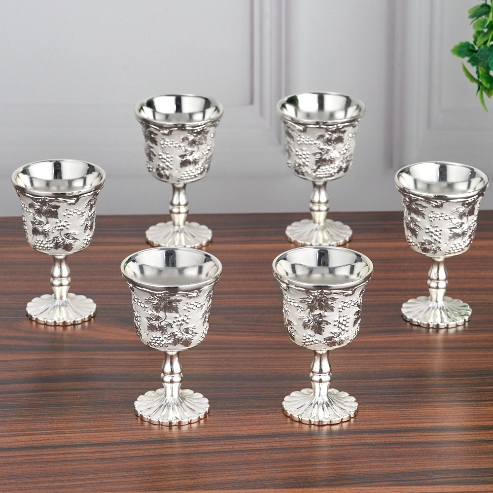 Рюмки для водки необычные, с оригинальным дизайном, набор из 6 рюмок из нержавеющей стали с покрытием 18k Silver Plated полезный аксессуар для сервировки стола. Декоративный набор из 6 рюмок с резным узором, посуда - идеально подходит для вашего интерьера, для дома, дачи, квартиры, для кухни или ресторана, для сервировки стола на каждый день, украсит праздничный или обеденный стол. Рюмки применяются для употребления водки, ликера, коктейлей, текилы и любых крепких алкогольных напитков, имеют объем 35 мл, высоту 7 см и диаметр 4,5 см., вес одной рюмки 61 гр. Рюмки металлические - не впитывают запах, легко моются, после мытья вытирать мягкой тканью насухо (не мыть в посудомоечной машине). Рюмки будут отлично выглядеть как декор праздничного интерьера и прекрасно дополнят уютную сервировку стола. Подарочный набор из 6 рюмок - лучший подарок парню, другу, дедушке, брату, папе, любимому, мужу, мужчине, для нее, для мамы, бабушки, девушки, любимой жены, для коллеги по работе, начальнику, учителю, врачу, подруге, друзьям на новый год, на рождество, на 8 марта, на 14 февраля, на день рождения, на именины, на любой повод или без повода просто так. Выбирайте и другие товары нашего ассортимента, нажав на значок Стиль-Ампир справа от фотографии товара.