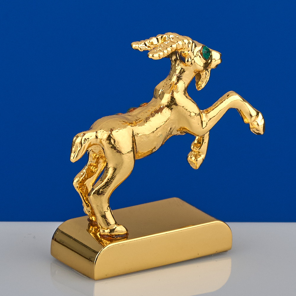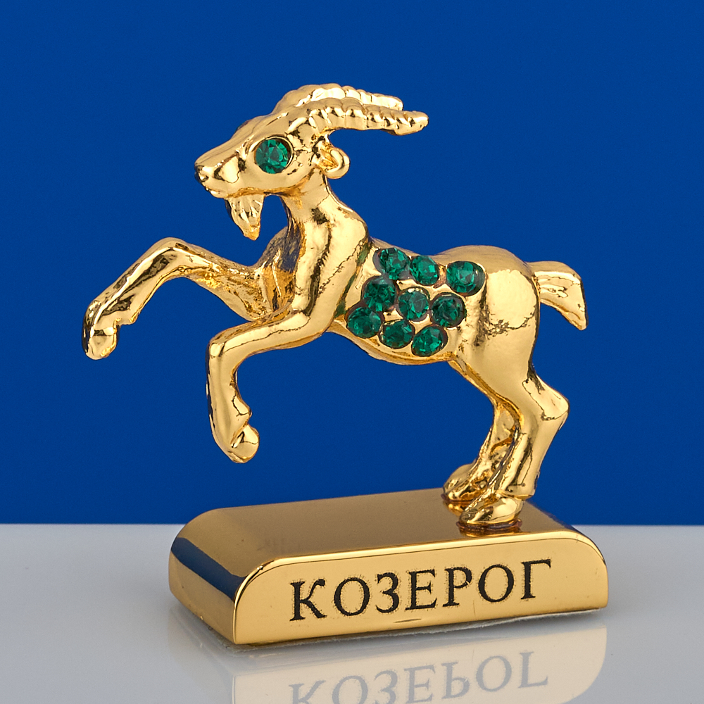 Фигурка знак зодиака Козерог с австрийскими стразами - удивительный и неповторимый подарок. Статуэтку Знак зодиака Козерог можно подарить практически на любой праздник, будь то Новый год или День рождения, свадьба или новоселье. Знак зодиака Козерог декоративная сувенирная интерьерная статуэтка станет прекрасным украшением вашего дома или офиса. Декоративная фигурка подойдет, как сувенир, для детей и взрослых станет неповторимым подарком. Уникальная технология покрытия 24 Gold Color Plated создает удивительное позолоченное покрытие, а стразы придают неповторимый блеск подарочной фигурке Знак зодиака. Фигурка знак зодиака станет оригинальным талисманом для его владельца. Подарок Знак Зодиака имеет размер 3х1,4х4 см, сувенир Знак зодиака декорирован яркими австрийскими стразами. Выбирайте и другие товары нашего ассортимента, нажав на значок Стиль-Ампир справа от фотографии товара.
