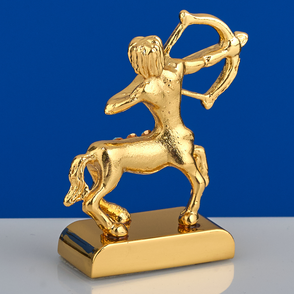 Фигурка знак зодиака Стрелец с австрийскими стразами - удивительный и неповторимый подарок. Статуэтку Знак зодиака Стрелец можно подарить практически на любой праздник, будь то Новый год или День рождения, свадьба или новоселье. Знак зодиака Стрелец декоративная сувенирная интерьерная статуэтка станет прекрасным украшением вашего дома или офиса. Декоративная фигурка подойдет, как сувенир, для детей и взрослых станет неповторимым подарком. Уникальная технология покрытия 24 Gold Color Plated создает удивительное позолоченное покрытие, а стразы придают неповторимый блеск подарочной фигурке Знак зодиака. Фигурка знак зодиака станет оригинальным талисманом для его владельца. Подарок Знак Зодиака имеет размер 3х1,4х4 см, сувенир Знак зодиака декорирован яркими австрийскими стразами. Выбирайте и другие товары нашего ассортимента, нажав на значок Стиль-Ампир справа от фотографии товара.